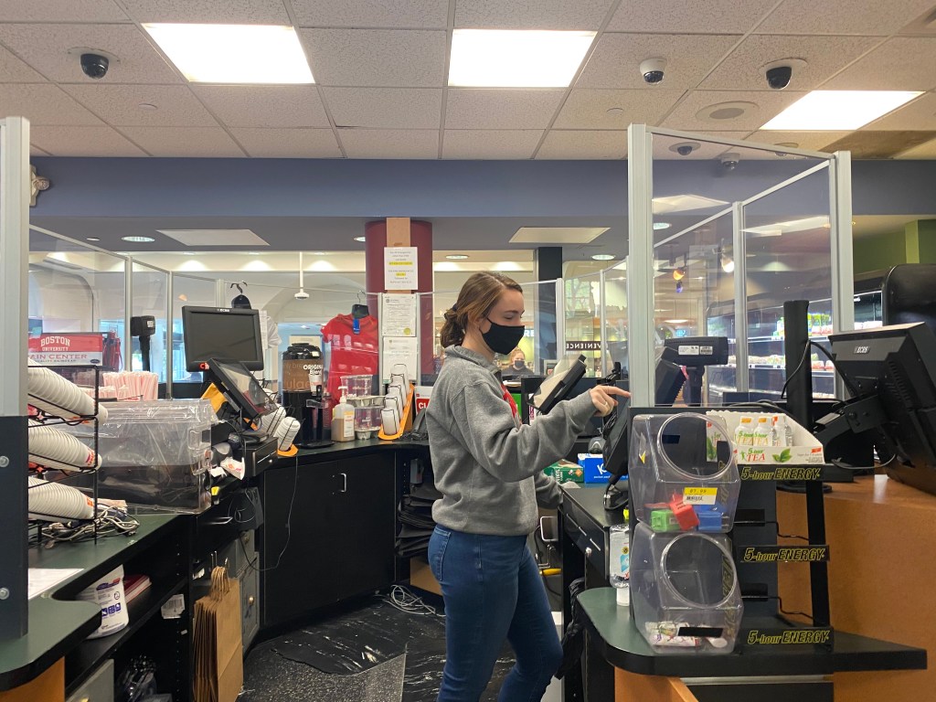 Keira McAteer works at the City Convenience store in the George Sherman Union. “I’m usually really proactive with my work, but I’ve been doing things last minute recently. That was a sign that I was losing my motivation. I work pretty much 30 hours a week as a student, so it’s a lot. It’s definitely very hard to balance school and work and a social life, especially now. It’s been hard finding time to do things that I want to do and have fun,” said McAteer.
