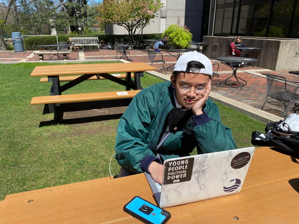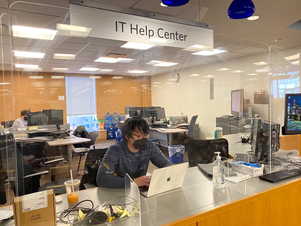 Anthony Chang works at the IT Help Center Desk in Mugar Memorial Library. “I’m the kind of person that likes structure. It’s pretty easy to wake up 5 minutes before class and pull up your computer and attend class that way. But I think having the structure of having to wake up an hour early to make breakfast and get ready and put effort into starting the day is really beneficial to me. The opportunity to not [attend class], while it may be easier, has been a negative in terms of work ethic and accelerated burnout. It’s kind of like the same thing everyday, there’s no difference in routine,” said Chang.